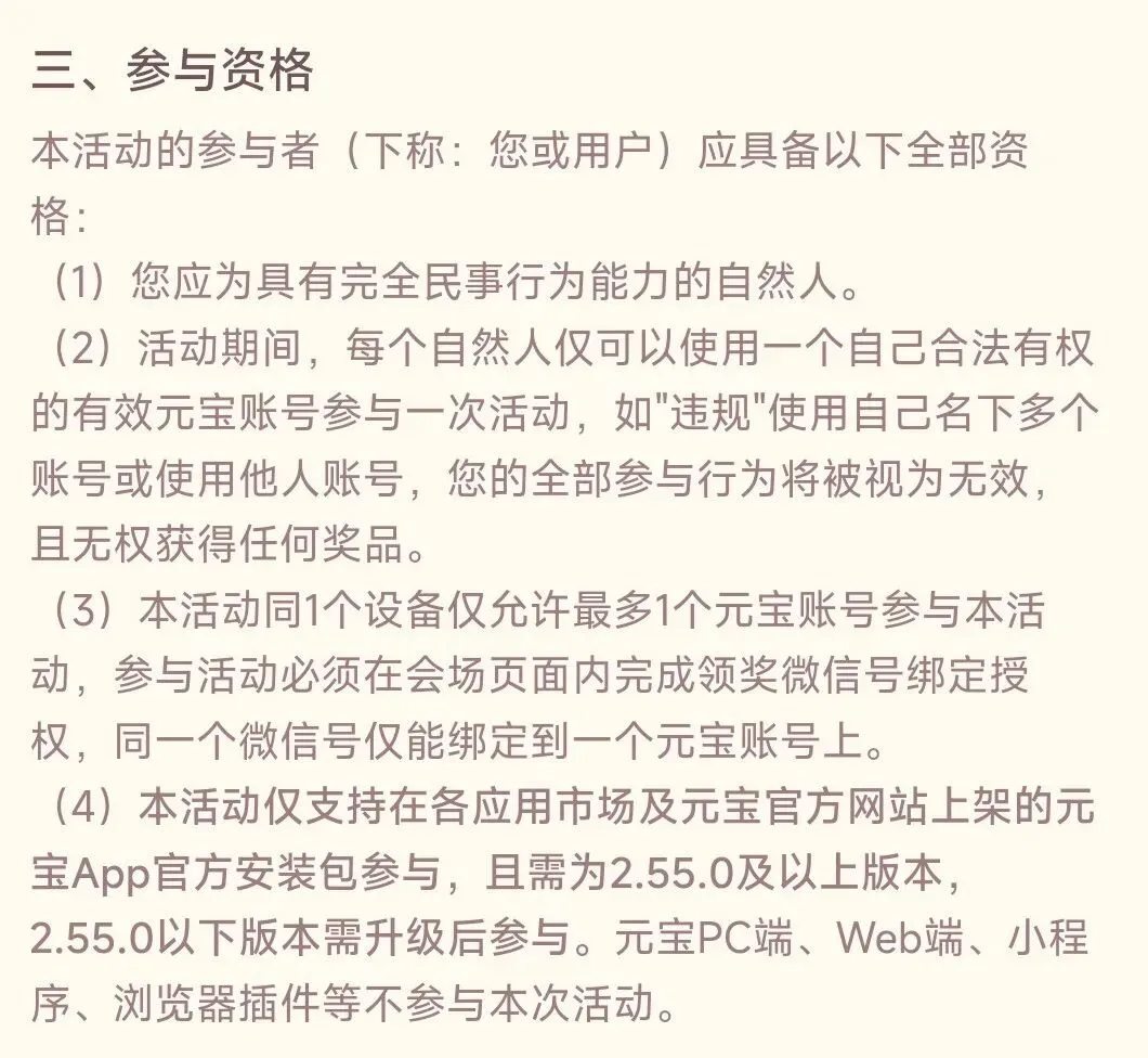 注意⚠️:同一用户仅可参与一次活动,只要是同一微信号、手机号、设备等,都视为同一用户。