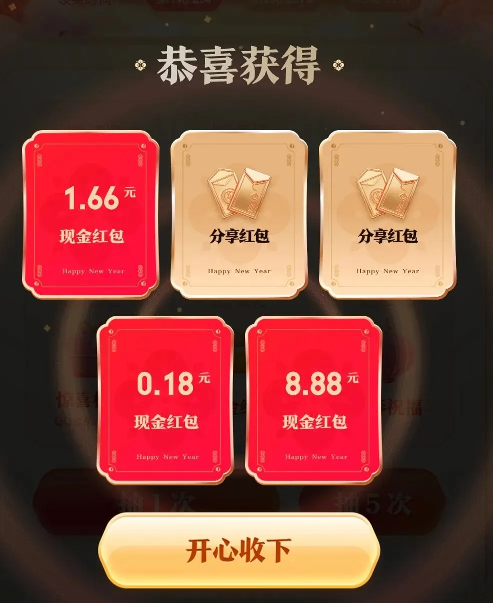 好友点开拆包后,双方各得现金奖励(你会额外得抽奖次数)。
