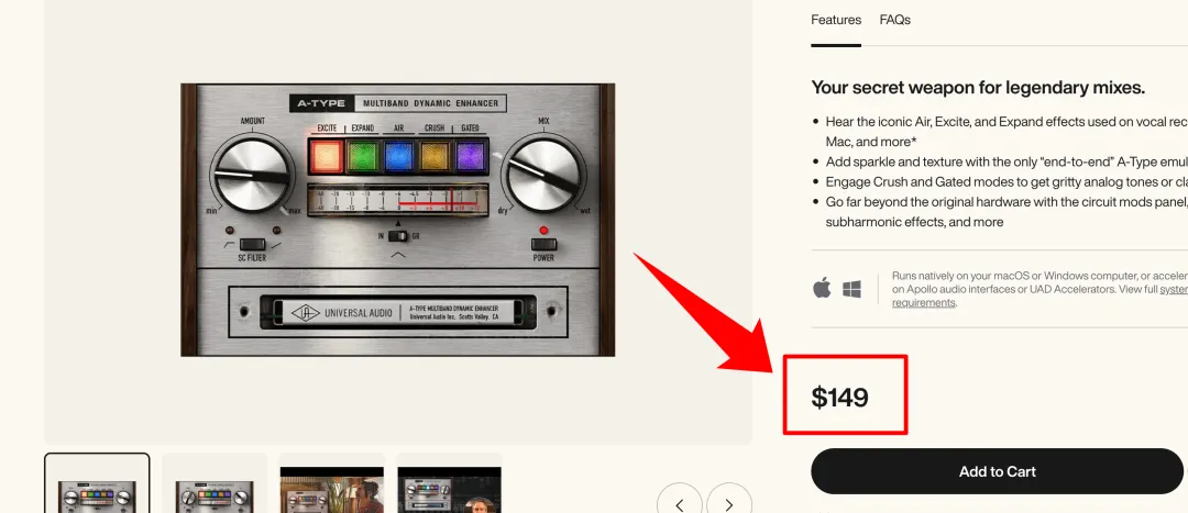 这个 A-Type 多频段动态增强器是 首次加入 UAD 的可选列表,是非常值得推荐的一款饱和染色效果器,典型的“放进去就好听”,用于在保持动态控制的同时提升清晰度与频段表现,是改善整体混音表现的重要工具。