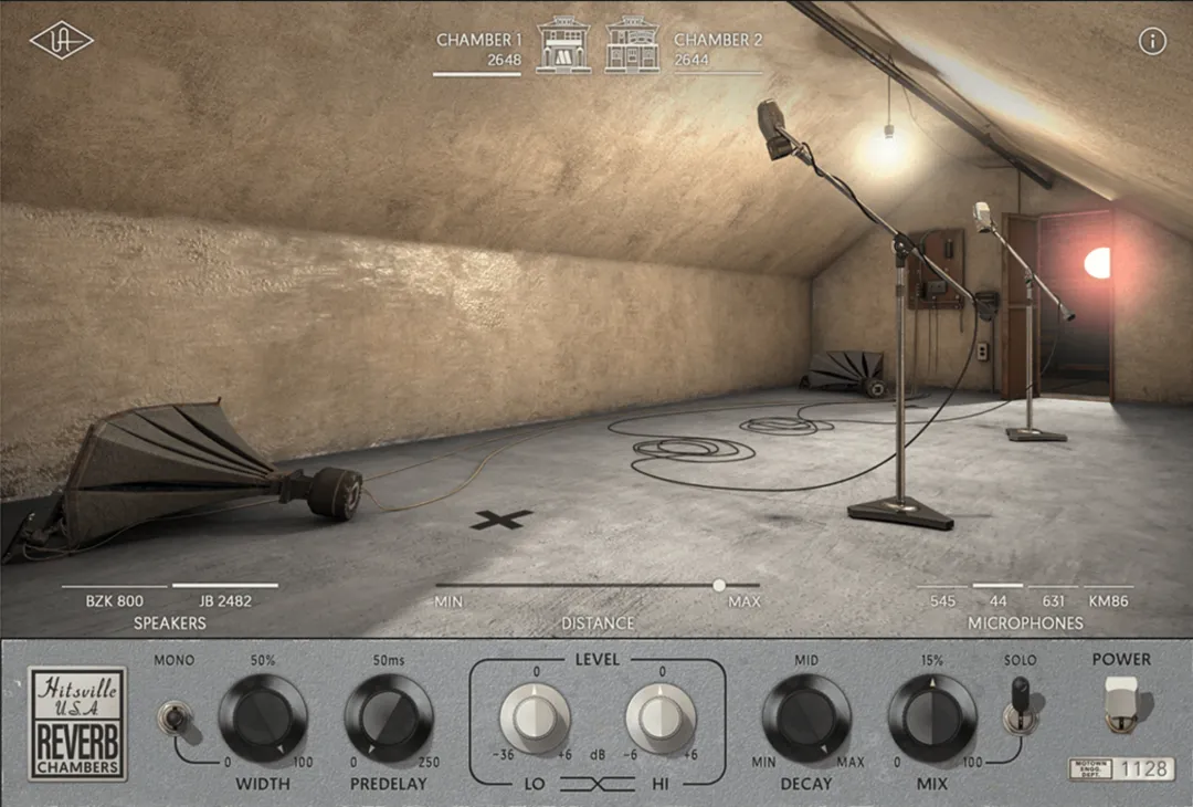 Hitsville Reverb Chambers 是对 美国 Motown Hitsville U.S.A. 工作室屋顶的混响室声音特性建模的插件。该空间在 Motown 乐队及工程师录制作品中起到了关键作用,以独特混响色彩丰富且音乐性强著称。UAD 在建模中参考了真实的房间声学与麦克风布局,并使用动态房间建模来模拟麦克风位置对混响的影响。这个插件适合为人声、鼓等轨道添加带有空间感的自然混响效果,适用于多种音乐风格。