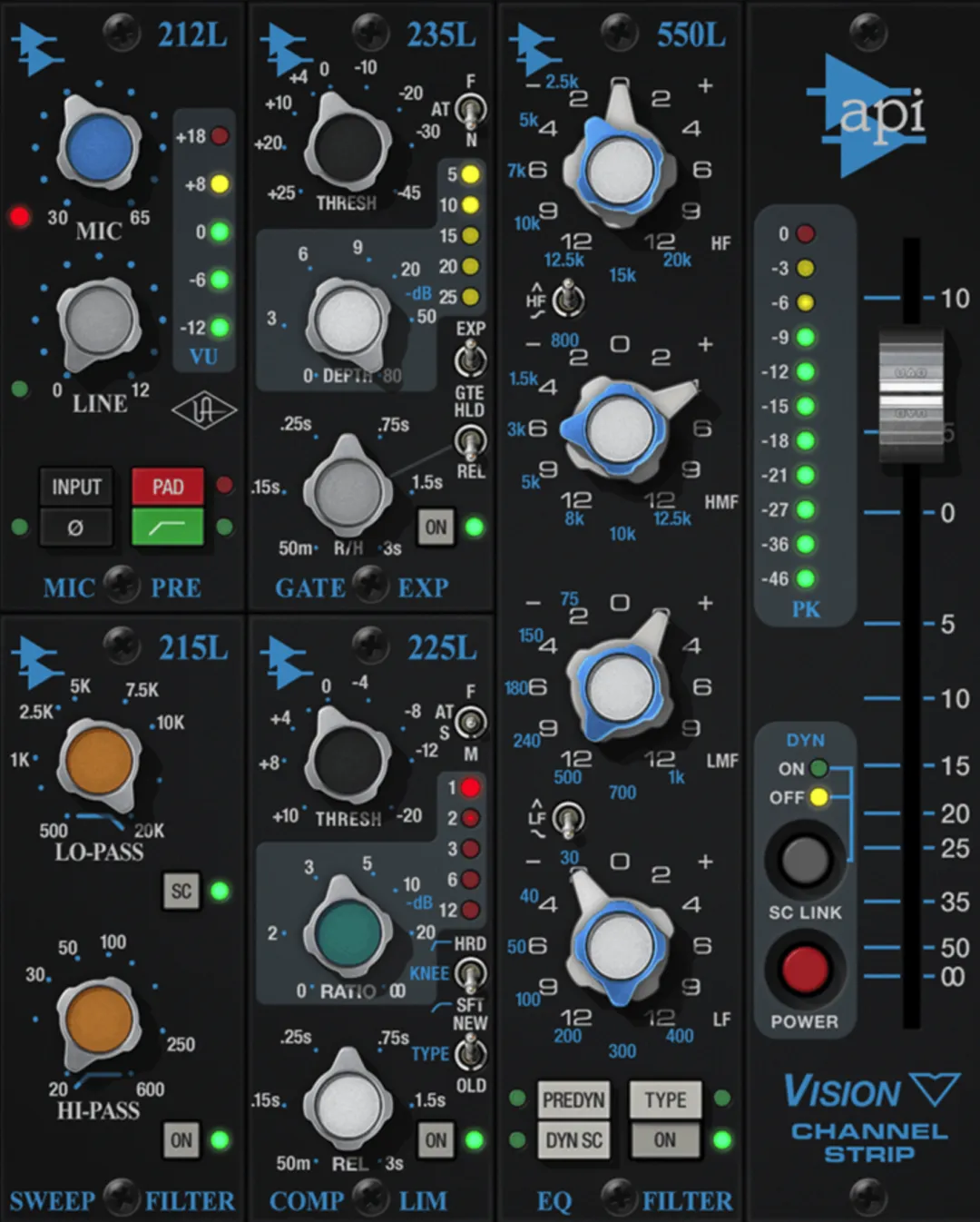 经典 API 2500 总线粘合压缩器,带有反馈或前馈声音,使用 API 的专利 Thrust 技术提升低频,为你带来与 API 标志性限制器相同的无与伦比的冲击力和能量。
