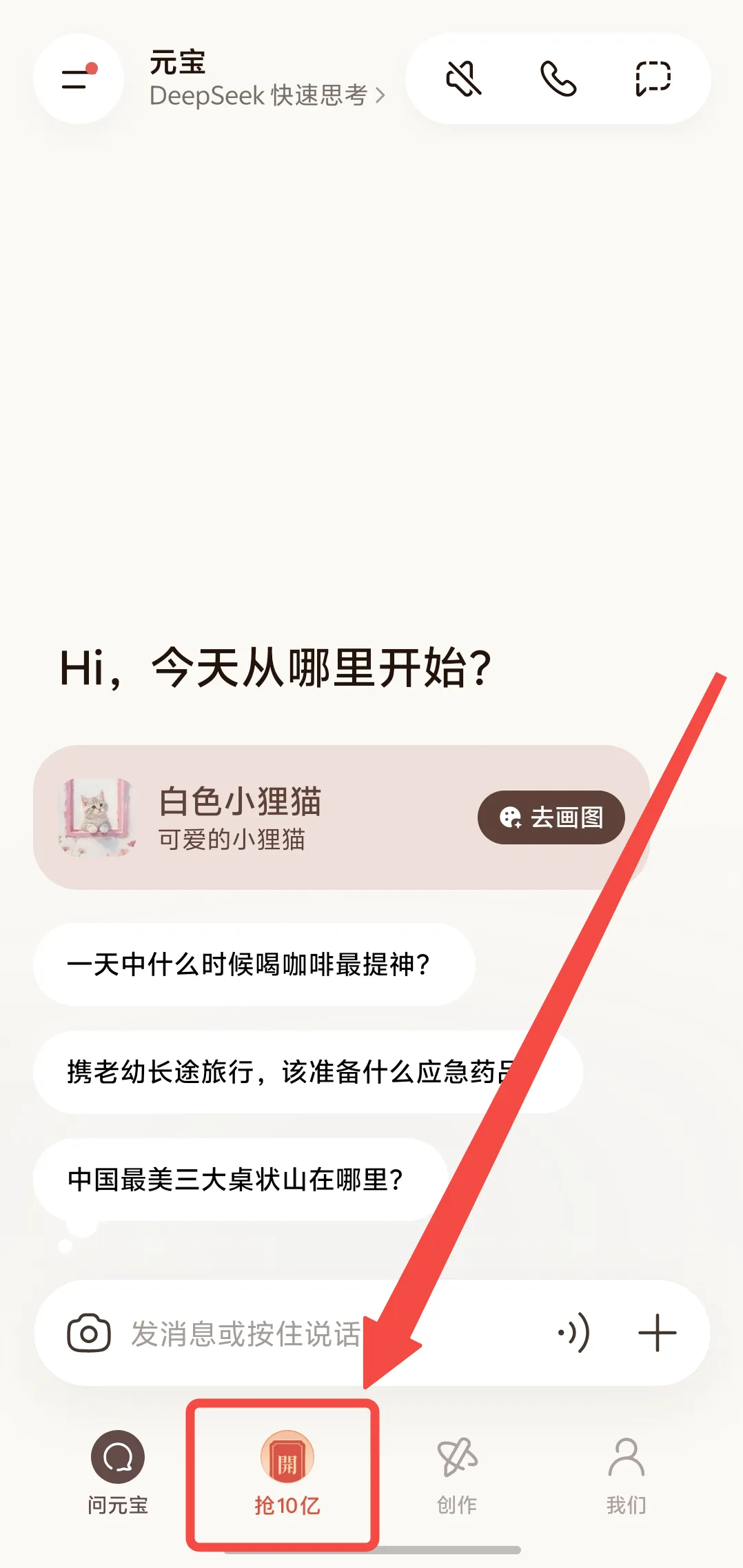 1、应用商店下载元宝APP最新版安装,点击主页下方的“抢10亿”活动即可参与。