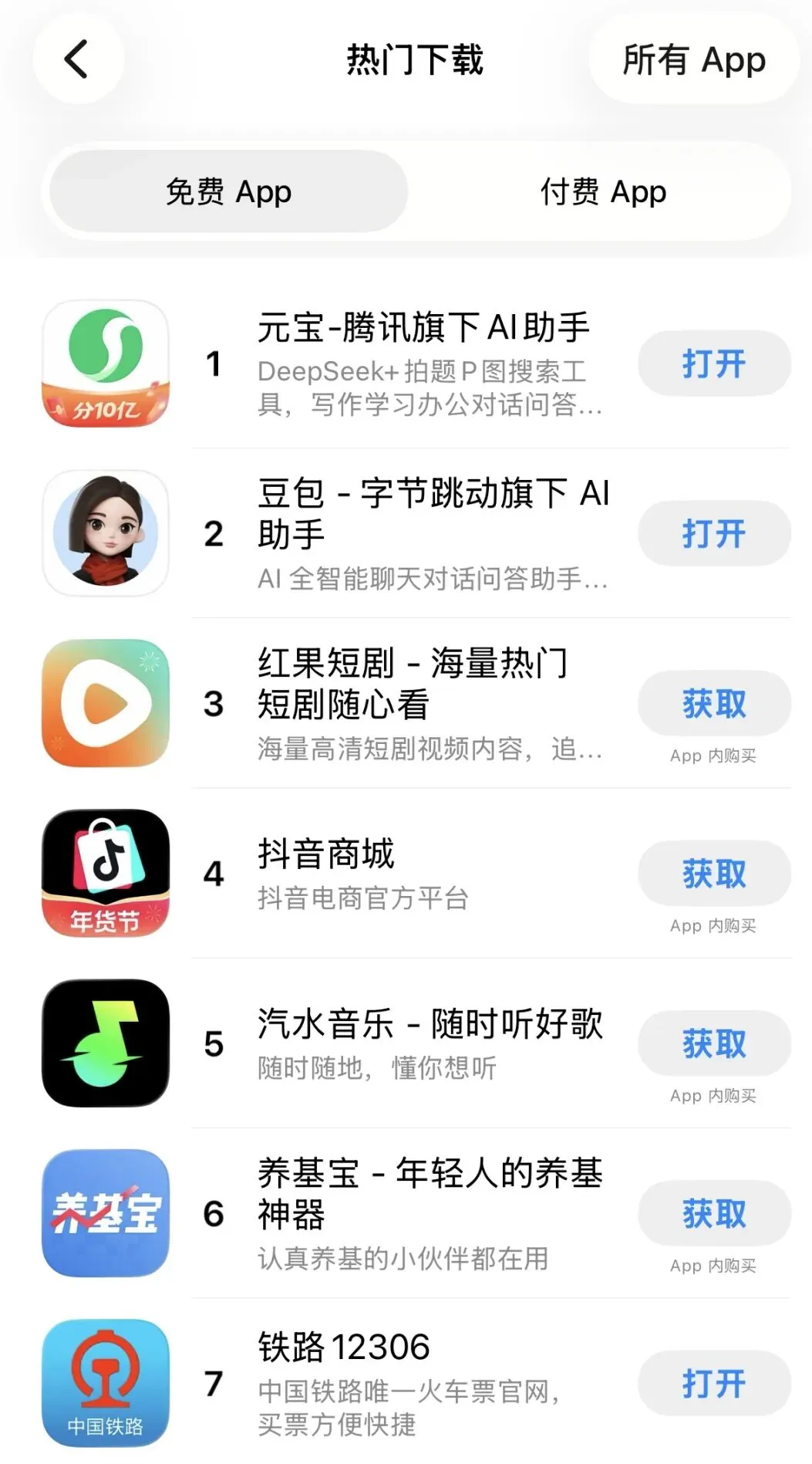 更值得玩味的是,它这次超越的对手,是长期霸占榜首的“豆包”。一场无声的AI助手王座争夺战,在春节前夕正式打响。
