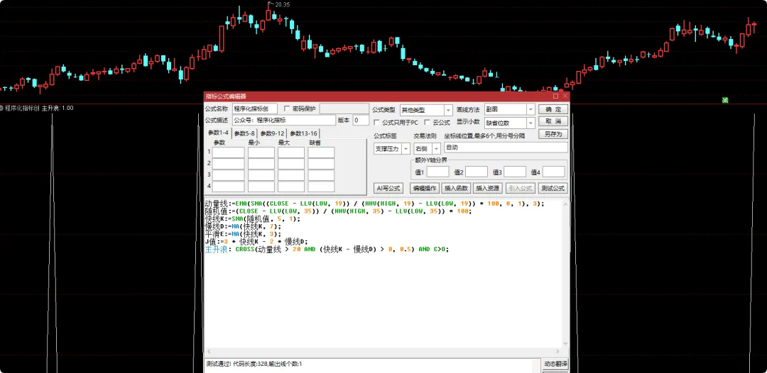 CXH:DRAWTEXT_FIX(1, 0.52, 0, 0, ‘☆微信公众号:(程序化指标) ☆’), COLORRED;