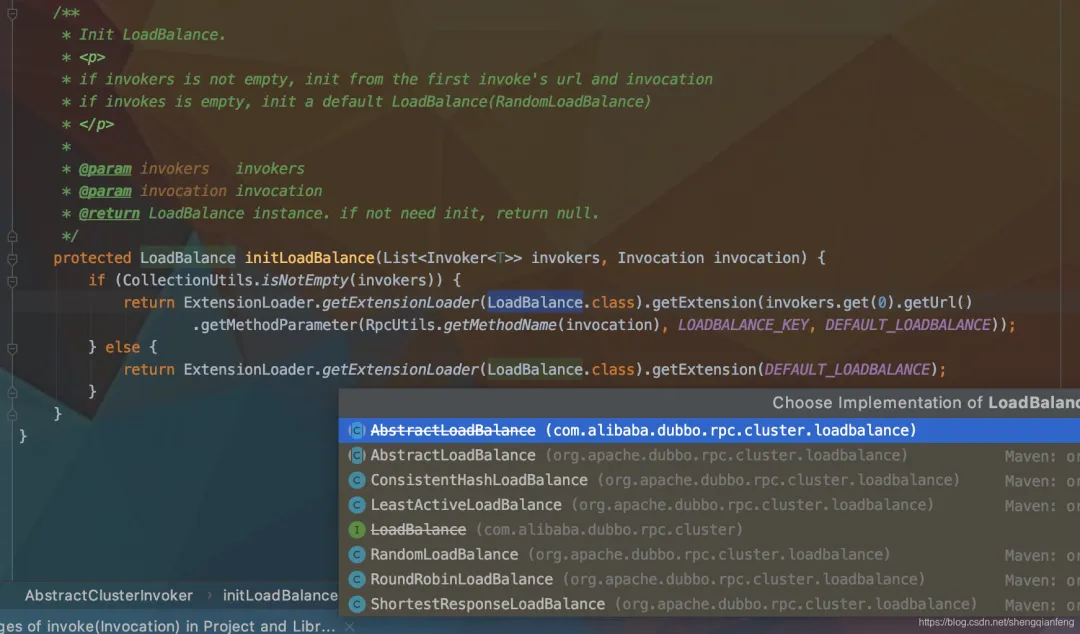 拿到List之后,那就要进行初始化一个负载均衡,看下这个initLoadBlance方法。