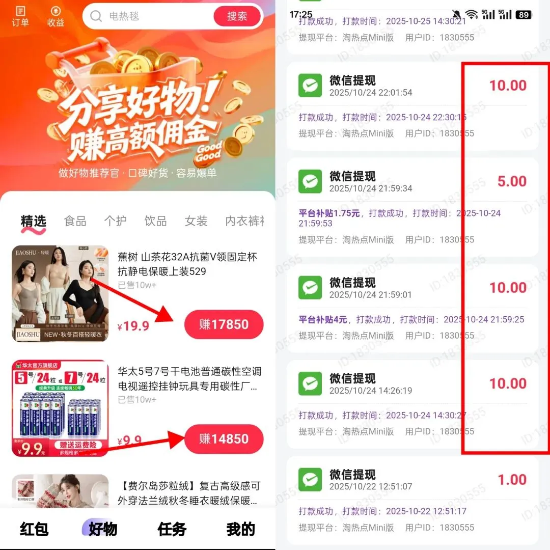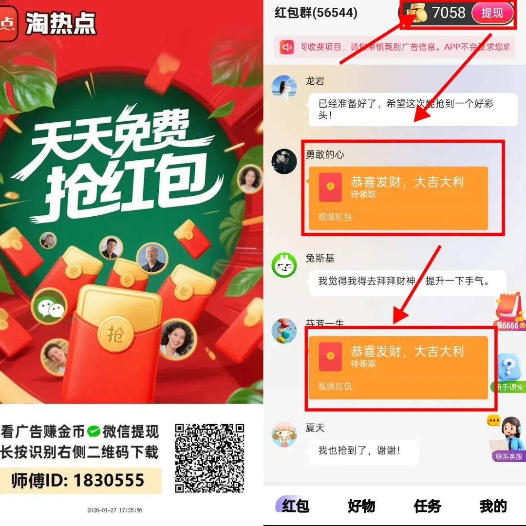 淘热点app挣米 纯看广告,领红包,一个红包高达0.5,满一元可提现,新人还有新人奖励和平台补贴。扫描二维码,游览器下载。 另外好物分享,自己购买可以省钱,还可以分享朋友圈赚钱。简单好操作,自己看广告即可,不用推广的挣米软件。