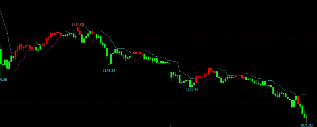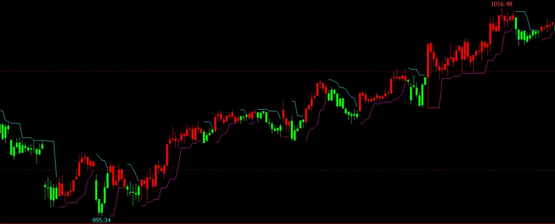 【文华财经】高低点趋势跟踪指标源码 – N 周期高低点判定 + 红绿 K 线变色 + 粉青趋势线