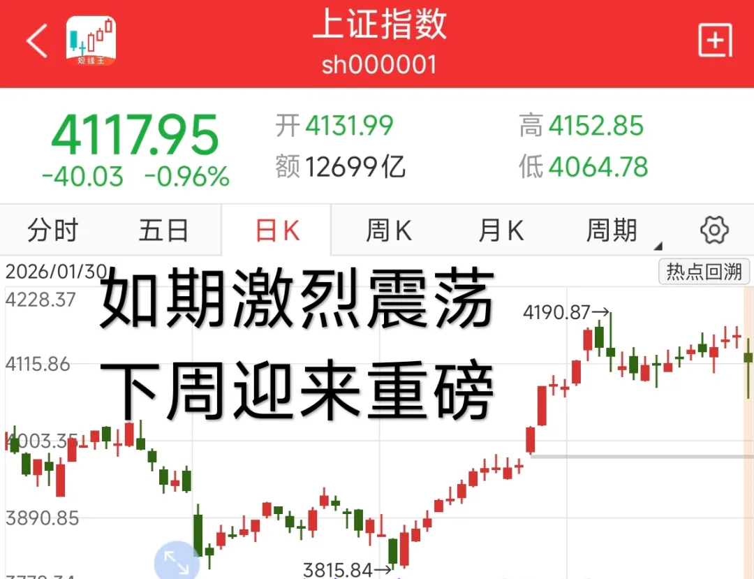 2、下周怎么走?预期也是剧烈波动,上方需要关注4150关口能否稳住,下方需要关注4100关口能否守住!但面临春节,是否再创新高?就“差一个确认”!