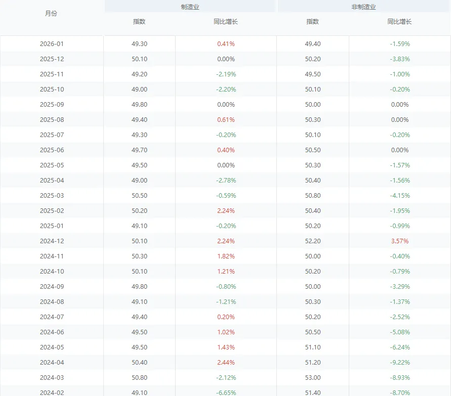 统计局:1月官方制造业PMI为49.3% 比上月下降0.8个百分点