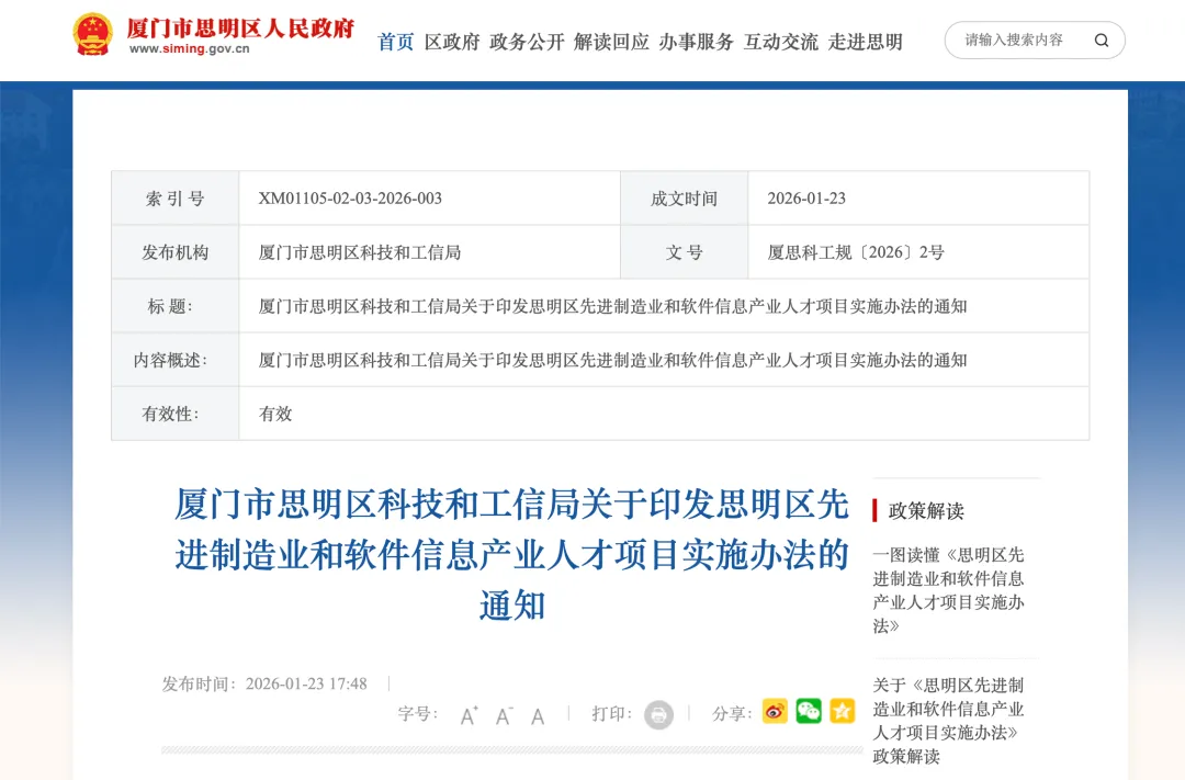 资讯 | 事关先进制造业和软件信息产业人才!思明区发布实施办法