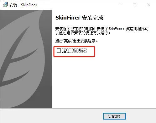 11、SkinFiner 完成安装,取消勾选 运行,点击完成;