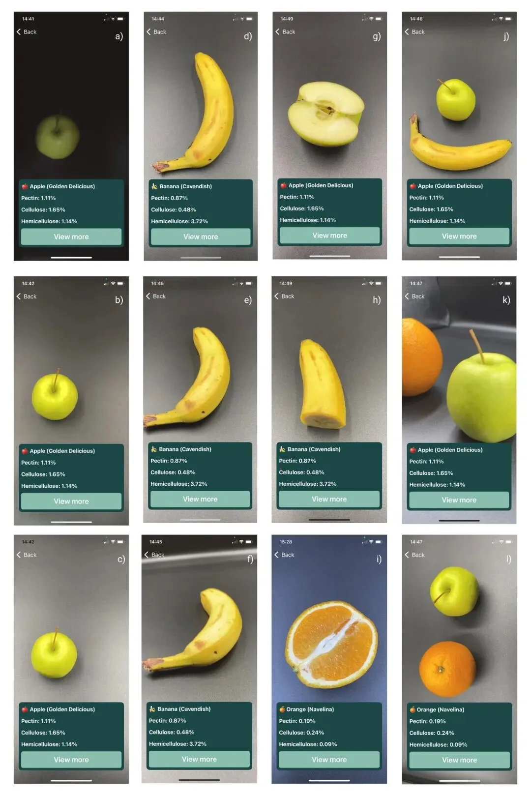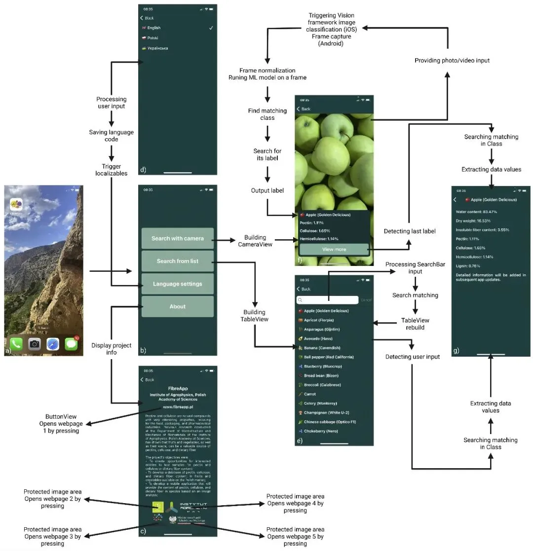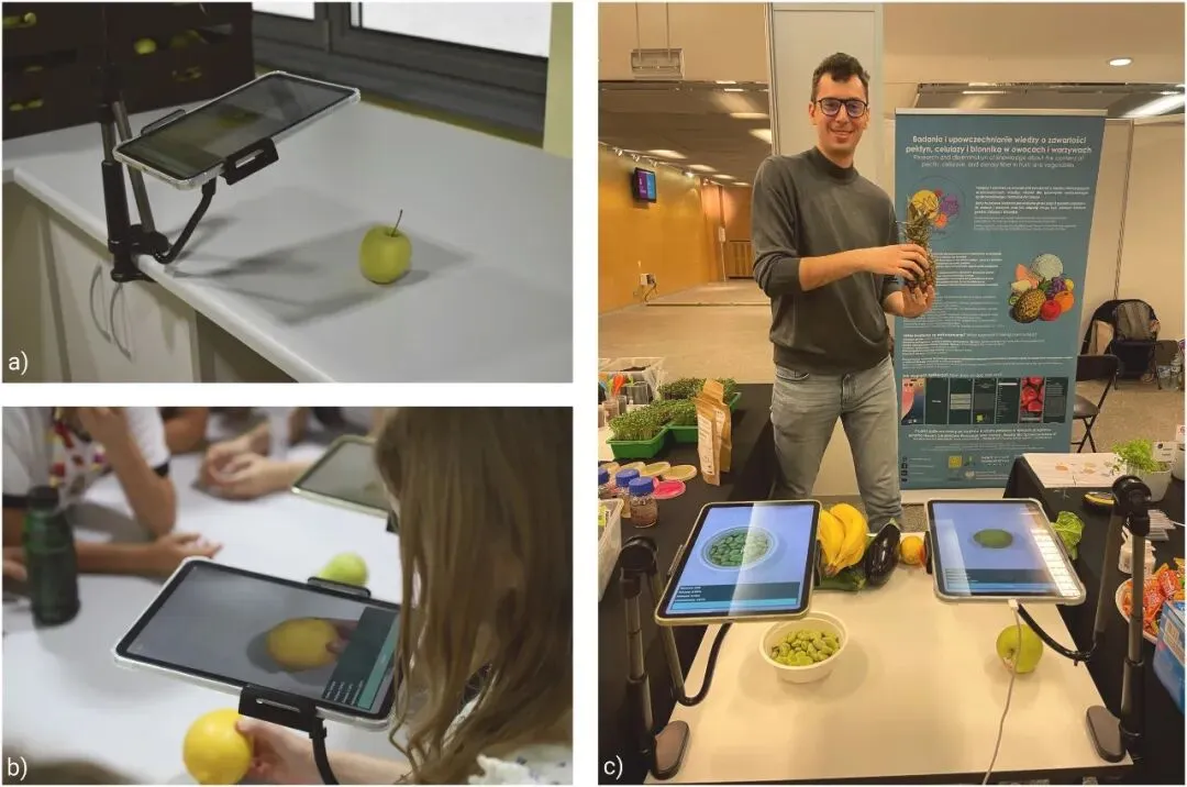 图 1. 一款移动应用程序FibreApp 是一款基于移动端机器学习(AI)的工具。它能让用户通过手机,快速、准确地评估各种蔬菜水果中的膳食纤维含量。简单来说:拍个照或输入简单信息,AI 就能告诉你这盘菜有多少纤维,无需实验室化验。