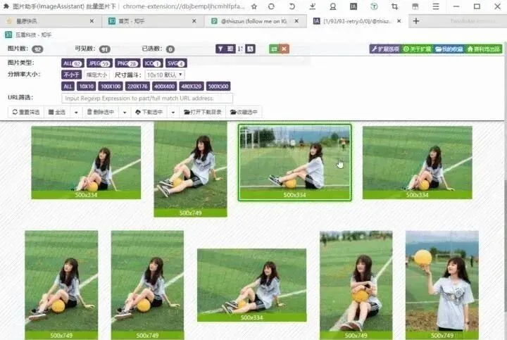而这个工具可以快速浏览图片网站,点击这个插件,就能批量保存,然后选择你需要的图片即可。