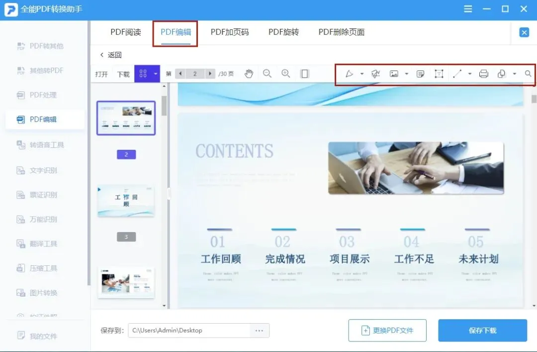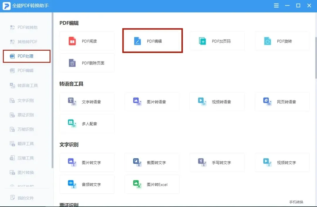 看这名字就能知道这是一款专业的PDF文档处理软件,全能PDF转换助手集齐了PDF转换格式、PDF编辑、PDF加密、PDF解密、PDF提取图片等强大功能;