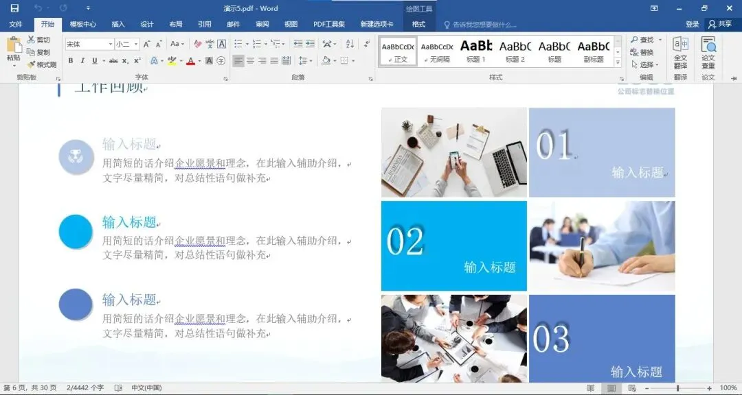 打开文件后,我们不难发现是office直接将PDF文件转换成Word格式,这样我们可以在Word格式下对原PDF文件进行修改文字、增减图片等操作。
