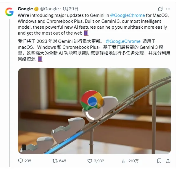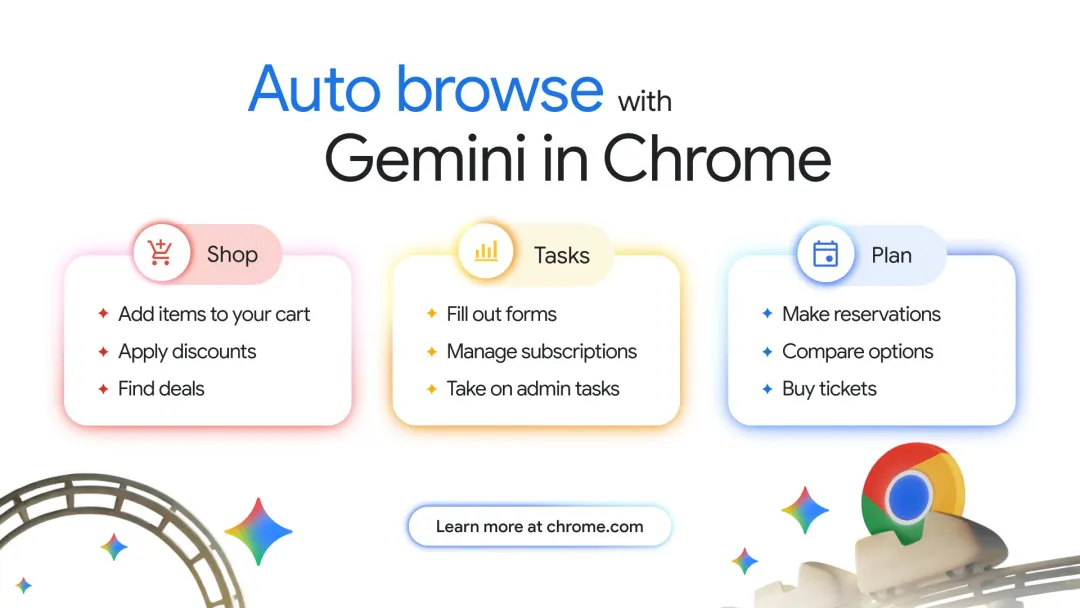 谷歌 Chrome重磅更新!不用装插件,Gemini 3就能搞定所有事!