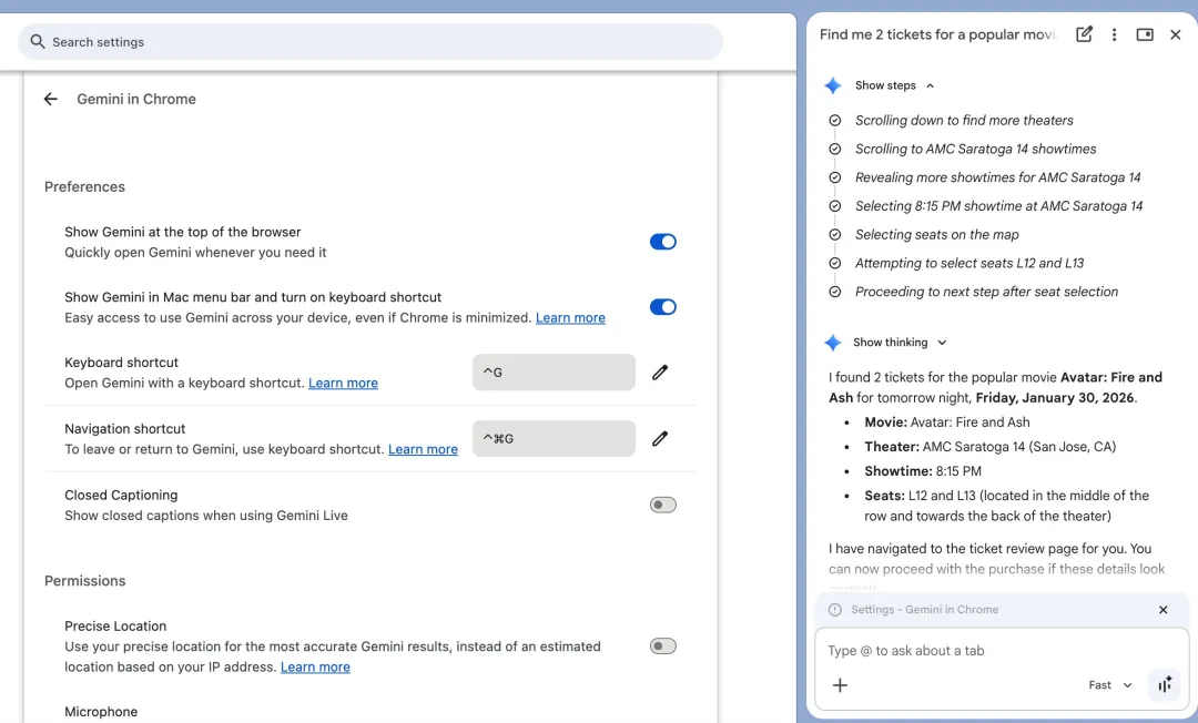 就算这些都做对,也不保证能用,目前这功能主要还是向Gemini Advanced付费用户(每月 20 美元那档)开放,免费用户即使看到了图标,也可能只能用基础summarization,Auto Browse这种核心功能根本调不出来。