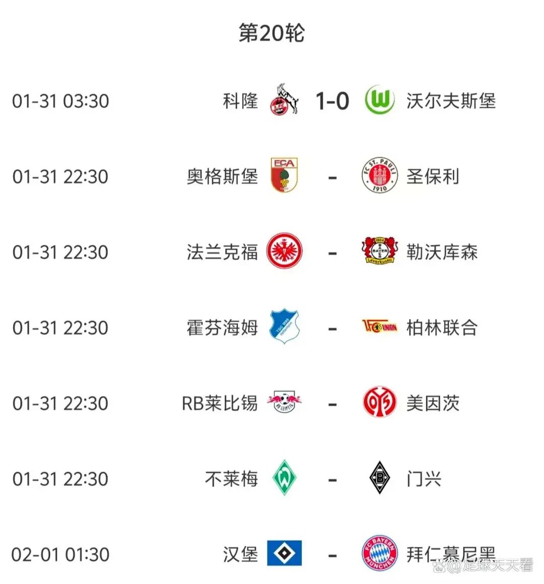 不同于意甲的保守风格,德甲联赛向来以进攻著称,经常上演进球大战。然而,昨晚德甲第20轮的首战却略显沉闷,科隆队凭借一粒进球,以1比0的比分小胜沃尔夫斯堡,使得沃尔夫斯堡的保级压力陡增。今晚,德甲赛场将同时上演六场精彩对决,下面让我们逐一分析。