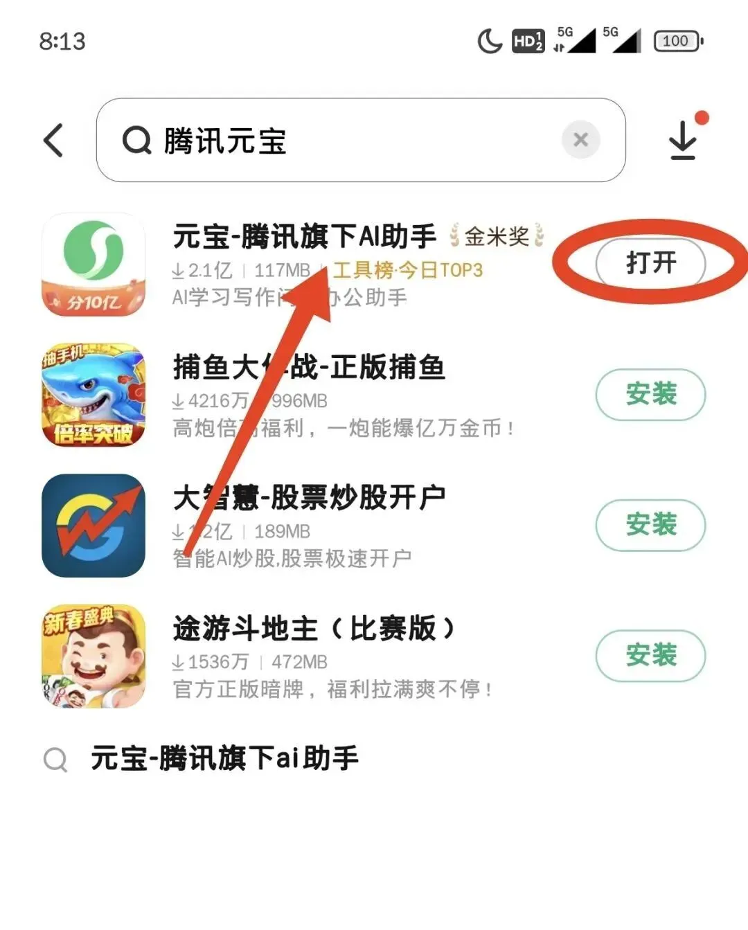 在应用商店搜索“腾讯元宝”并下载安装,一定要更新到最新版本。