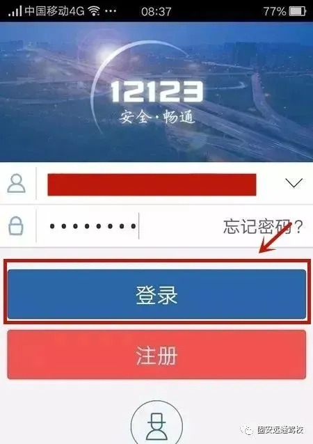 1.进入“交管12123”登陆界面,点击“注册”;