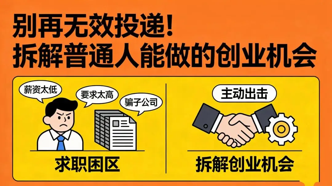 不是薪资太低,就是要求太高,要么就是骗子公司。你已经浪费了太多时间在无效投递上。与其被动等待,不如主动出击,和我们一起拆解普通人能做的创业机会。