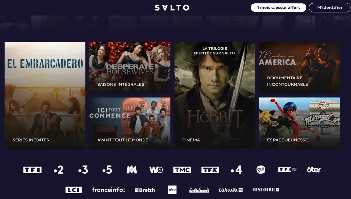Salto是法国较新的SVOD平台,它最大的特点是内容更新几乎可以与公共电视台同步。其服务汇集了19个频道,包括TF1,M6,France Télévision等,可以很便捷地观看电视节目的直播和重播。