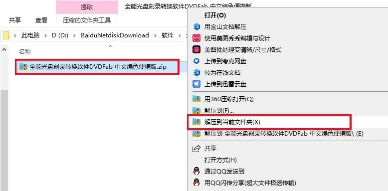 1、打开下载好的文件夹,鼠标右击选择【解压到当前文件夹】。