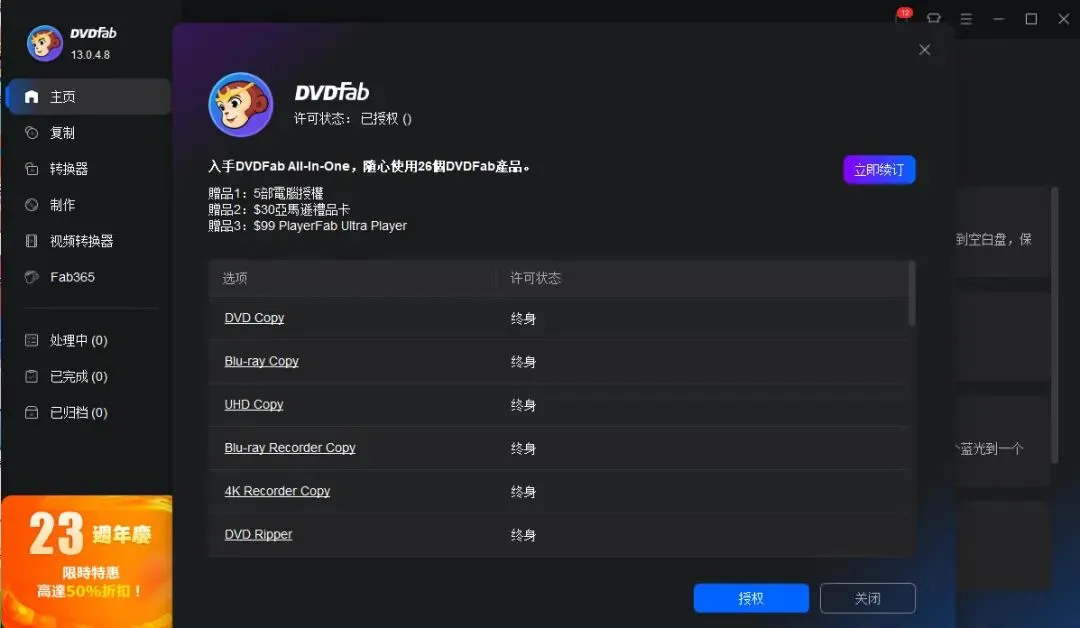 全能光盘刻录转换软件DVDFab v13.0.4.8 中文绿色便携版