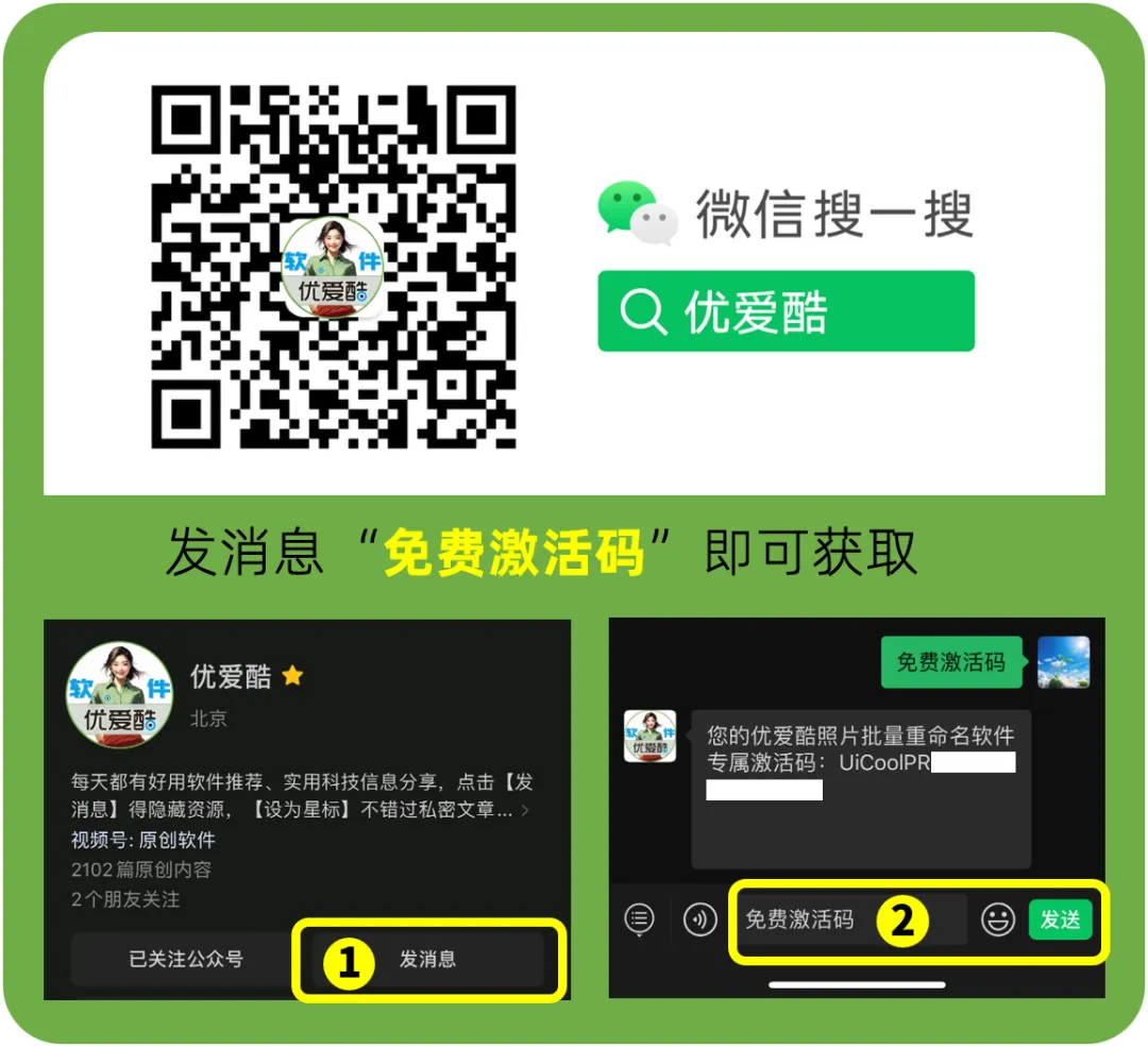 永久免费_优爱酷照片批量重命名工具软件安卓手机相册苹果iPhone相机照片批量按日期时间命名绿色单 文末附下载