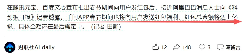 4.爆料称千问app春节红包将达上亿