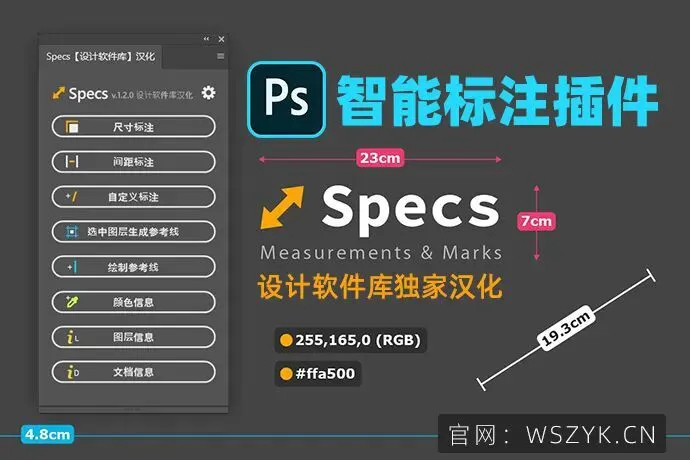 全网首发!PS尺寸标注插件Specs 1.2.0完整汉化版来了!支持Win/Mac【1812期】