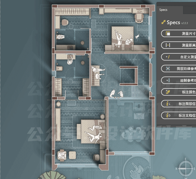 今天,设计软件库就给大家带来了最新版超级强大的PS智能标注插件Specs 1.2.0 完整汉化版,不管是平面图,还是剖立面,都能一键完成尺寸标注!