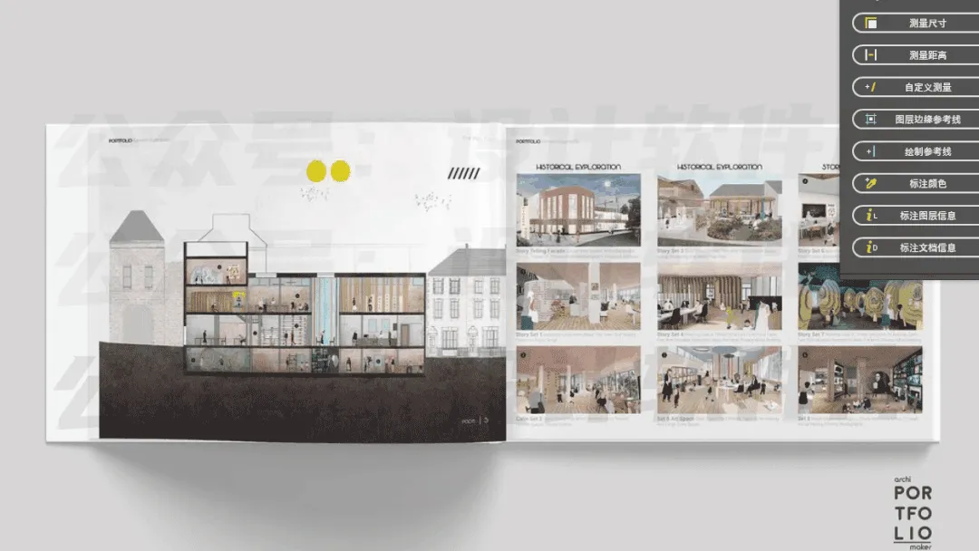 除了尺寸标注,工具还自带了超实用的参考线一键生成,如果你想排版,也可以一键生成排版参考线