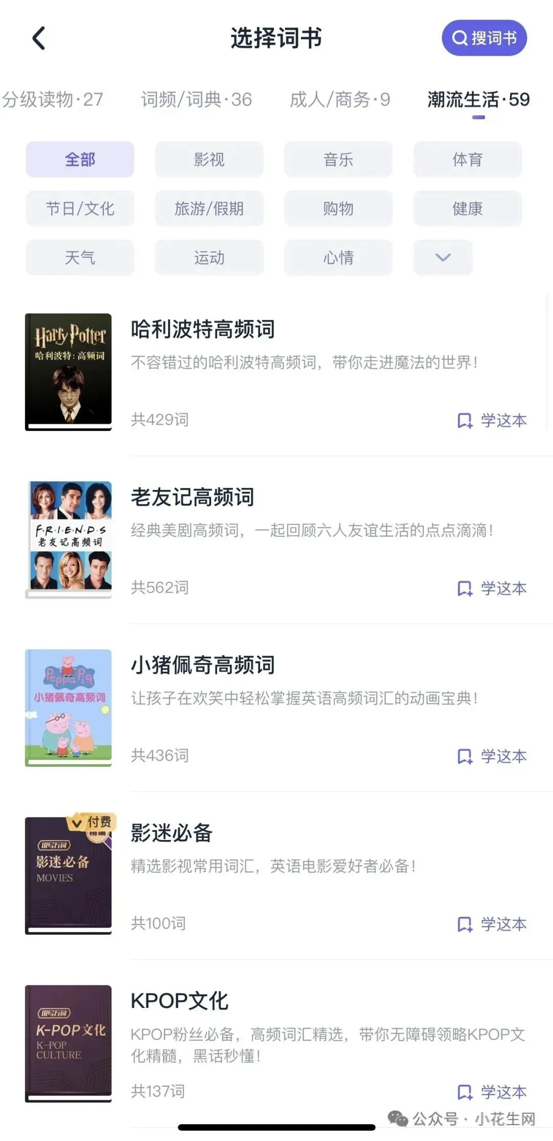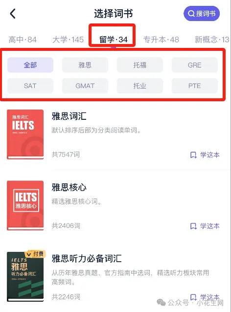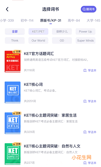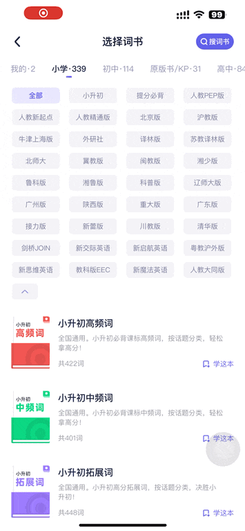另外,作为学单词的APP 词书量满足各个年龄段的需求,不夸张的说从小学可以用到大学。