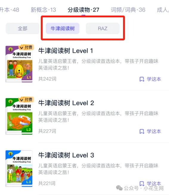 超1000+册词书资源,中小学教材、新概念、剑桥考试KET到FCE,四六级、托福雅思等,真正能从小学用到出国。