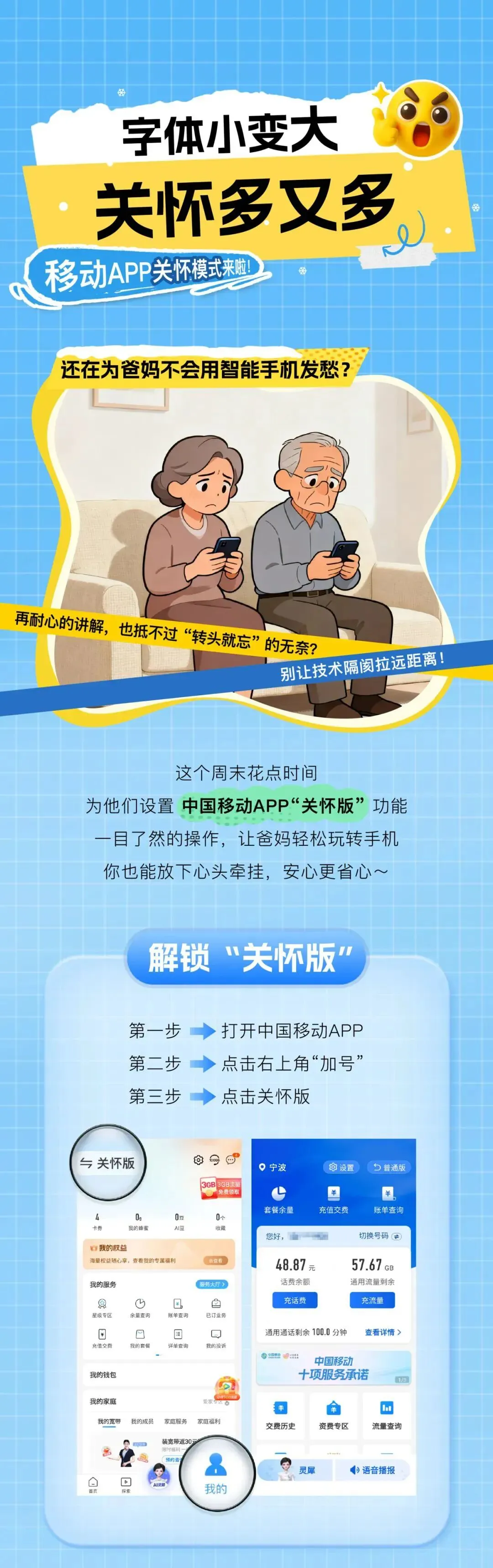 心级服务|中国移动APP关怀版,为爸妈开启秒变简易版!