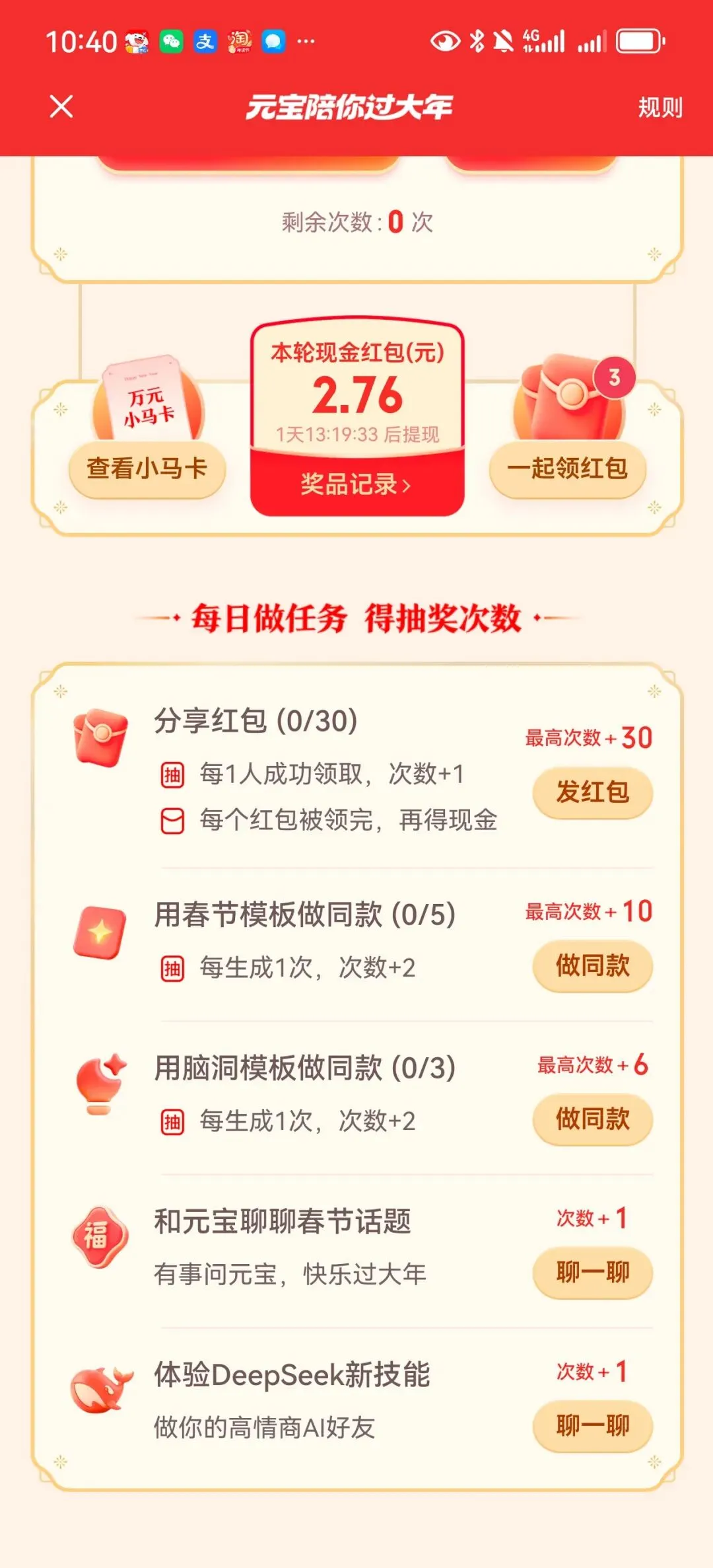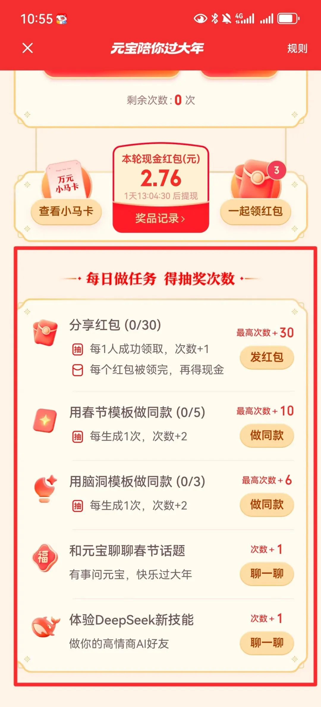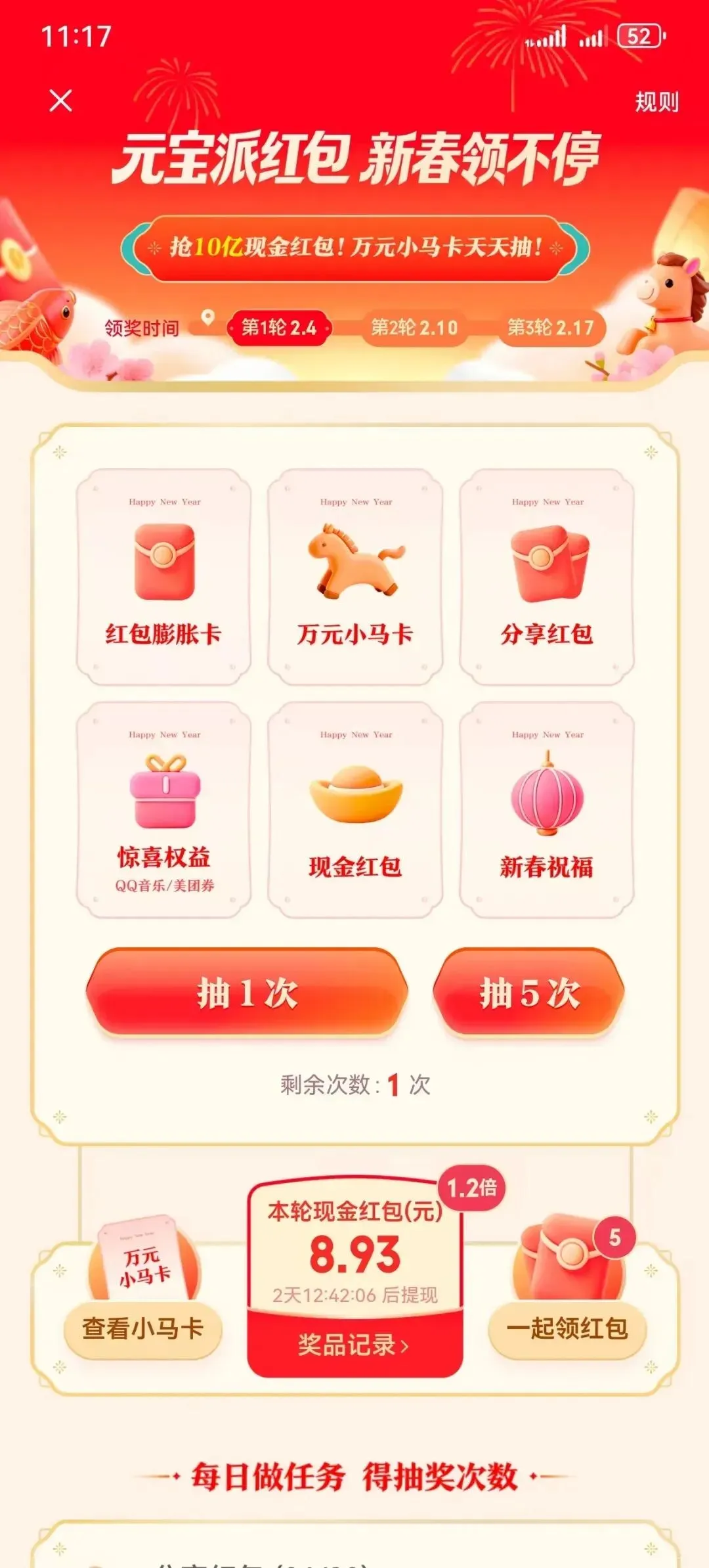 3、每天做任务,攒抽奖次数