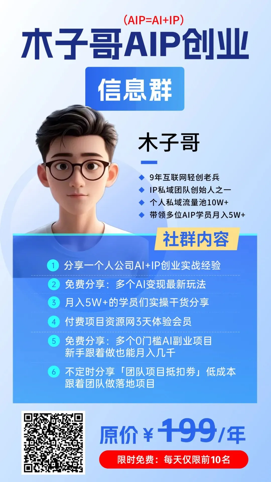 这个群可以说是离木子哥最近的地方了,木子哥会在里面高频分享关于AI、IP、创业、项目、搞钱信息差等干货。