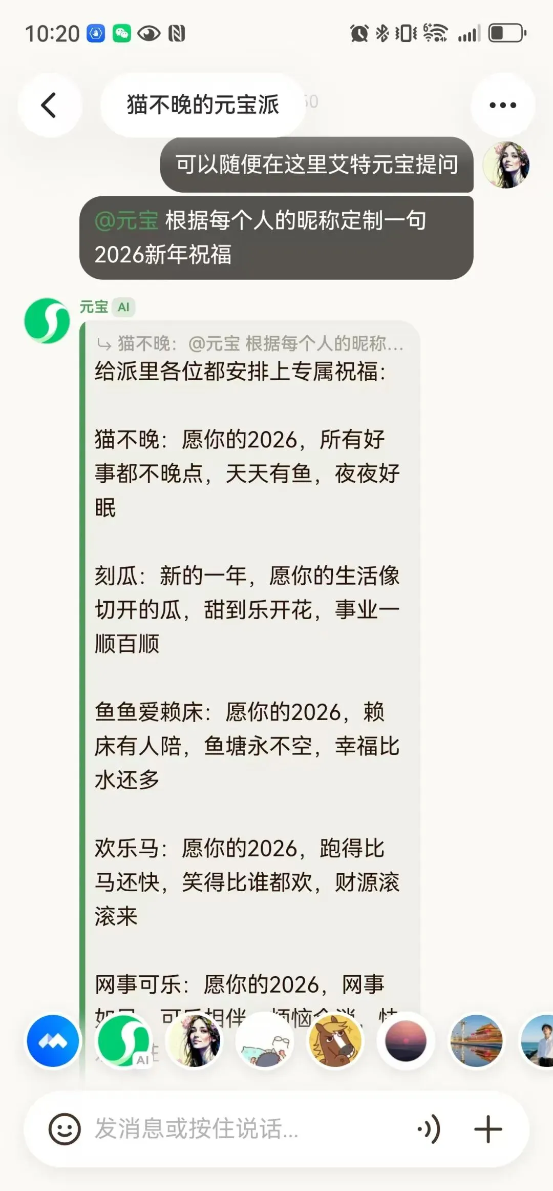 普通的AI是你问它答,而元宝推出的“元宝派”,是让AI直接住进你的群聊里,甚至帮你整顿社交圈。