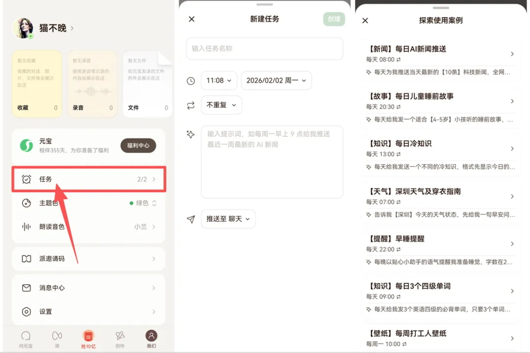 除了元宝派,元宝另一个对我来说比较实用的功能是“任务”。