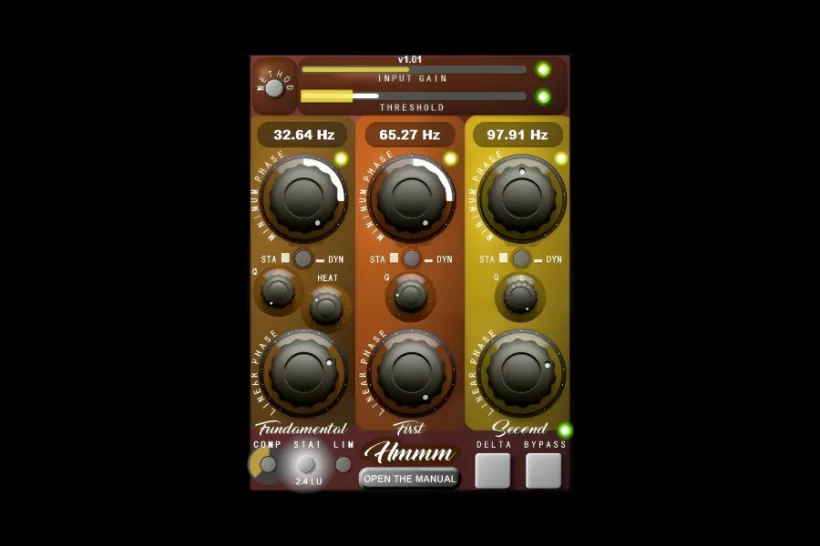 Hmmm 利用检测到的基频推导一、二次谐波,确保处理始终与同一低频结构在音乐性上相关联,进而可调整平衡、重量与谐波内容,并且不影响频谱无关部分。非常适合细微调整,既可用作纠正低频平衡问题的工具,也适合在成品混音中塑造低音的创意决策。
