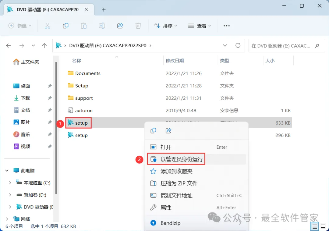 4、找到【setup】应用程序,右键选择【以管理员身份运行】它