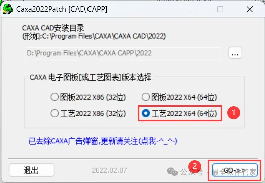12、勾选【工艺2022 X64(64位)】,再点击【Go】