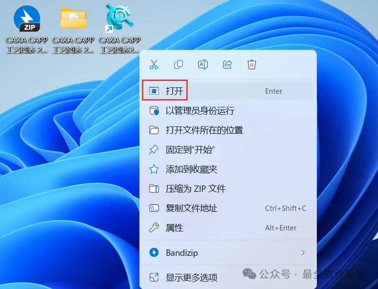 14、回到桌面,右键桌面上的【CAXA CAPP工艺图表 2022软件图标】,点击【打开】