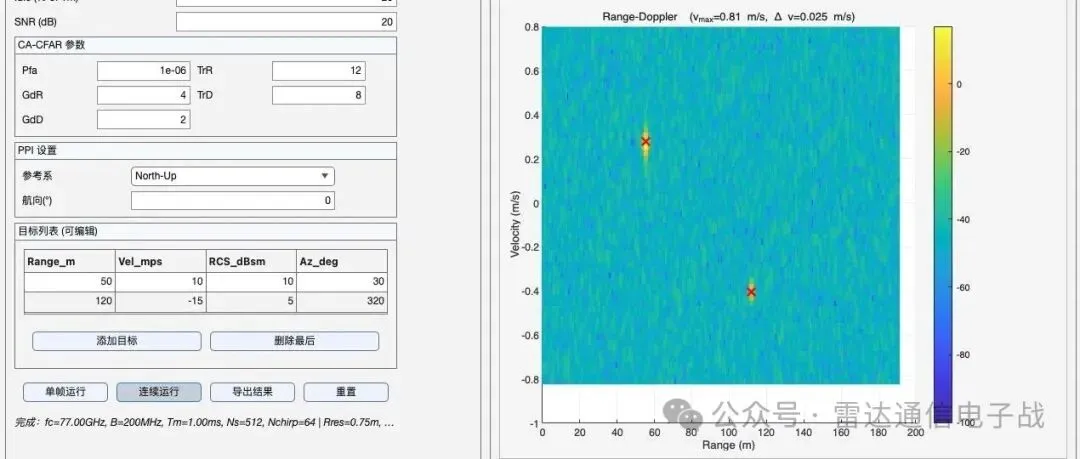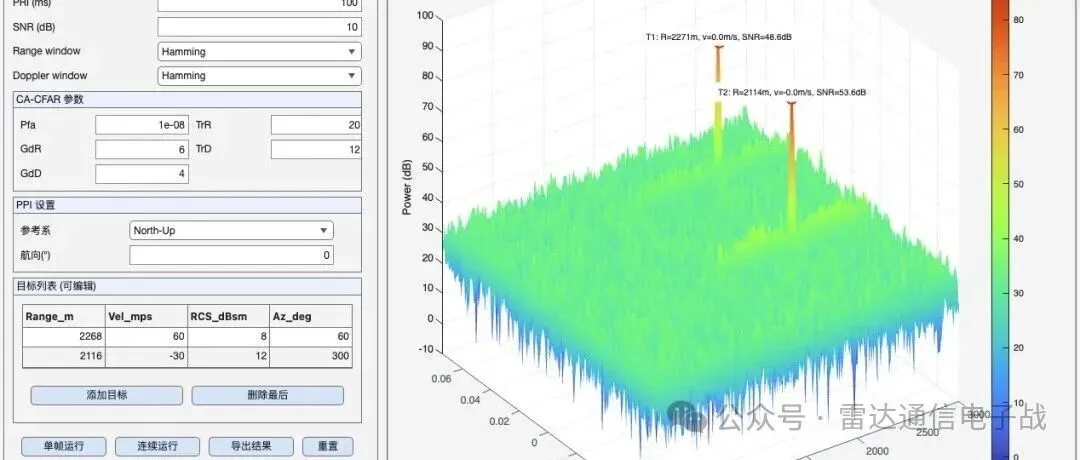 线阵雷达波束扫描及目标检测(含源码) 脉冲体制雷达的目标检测和航迹显示GUI界面设计(含源码) 让雷达目标“动起来”(含源码) 今天,我们又新增了线性阵列的波束扫描及目标检测,效果如图: RadarApp_v05的主要新增功能: 1,新增动态的波束扫描图,具体参数设置在左侧,可以通过改变阵元数和阵元间距来改变波束宽度; 2,在PPI界面上添加波束宽度的示意,可以直观看到当前波束扫到哪了,宽度是多少,可以看出它与波束指向是相关的:扫到0°时波束较窄,扫到两端时波束较宽。 这个精品课程的GUI界面是基于Matlab App Designer设计的,并且是用源代码的方式,不是图形拖拽的方式,你可以自行修改代码或界面参数看不同参数对雷达信号处理各环节的不同影响。 若你还有什么想增进的功能或想要完善的地方可以留言告诉我们,我们可能会在下一版中完善的。目前这是RadarApp_v05版本,和前四版一起放到了下面的精品课程中,你可以自行订阅下载,之前已订阅过的可以直接进入下载。铁杆会员和全场通用的用户可以免费下载。 识别二维码下载
