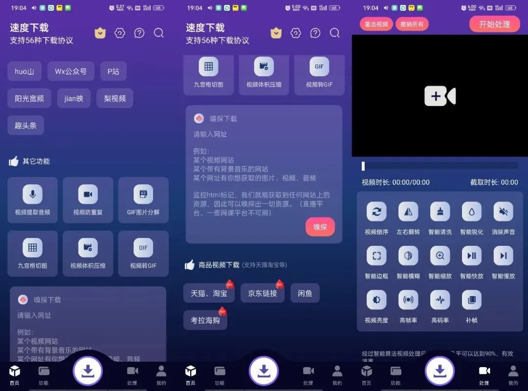 3. **速度下载(支持56种下载协议,包括短视频,手机号登录) 1.3.5**