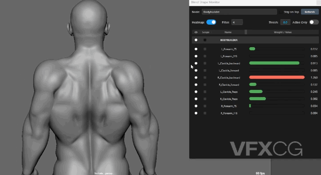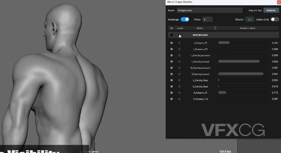 Blendshape Monitor 做到了:在动画播放的同时,视口里的权重可视化会实时同步。你不需要停下来,看着颜色随着角色动作流动,任何瞬间的权重异常、闪烁,都能在播放过程中直接捕捉到。这就相当于给动画做了一次实时的心电图监测。