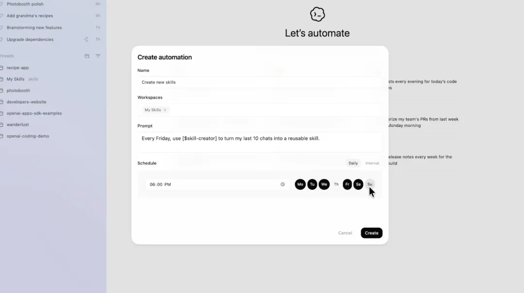 设定好规则后,Codex 可以在后台 定时跑任务,跑完放进 审核队列,能省掉很多重复性工作。