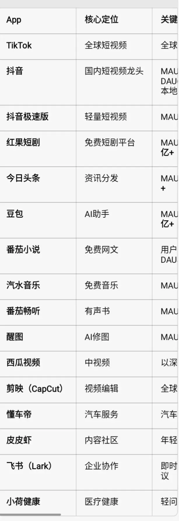 – 用户体量:全球MAU超20亿(字节系绝对王者)