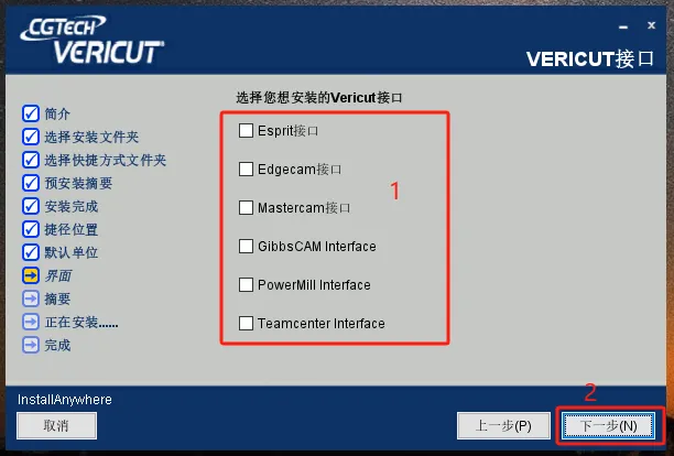 第十五步:勾选需要安装的接口,然后点【下一步】。